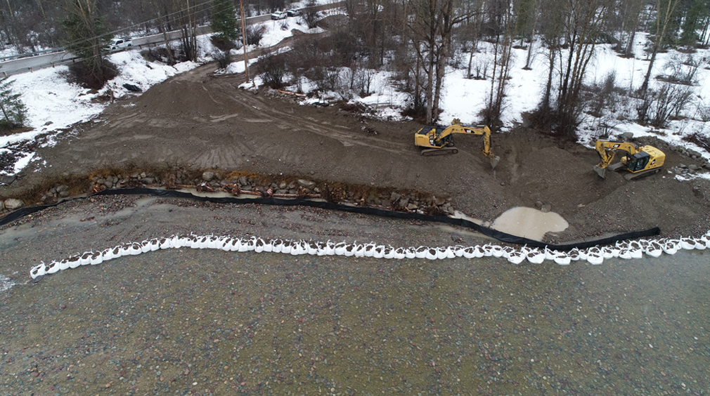 In addition to the technical design, KLJ facilitated public engagement efforts and supported funding acquisition to help the county implement this critical infrastructure project. The resulting solution involved a bank stabilization design that balanced durability with environmental stewardship. The engineered measures included Class 3 riprap, native river cobble, bio-engineered soil lifts, and submerged root wads—enhancing stability while also providing habitat for native fish species. Strategically placed vegetation further reinforced the bank and promoted ecological restoration.