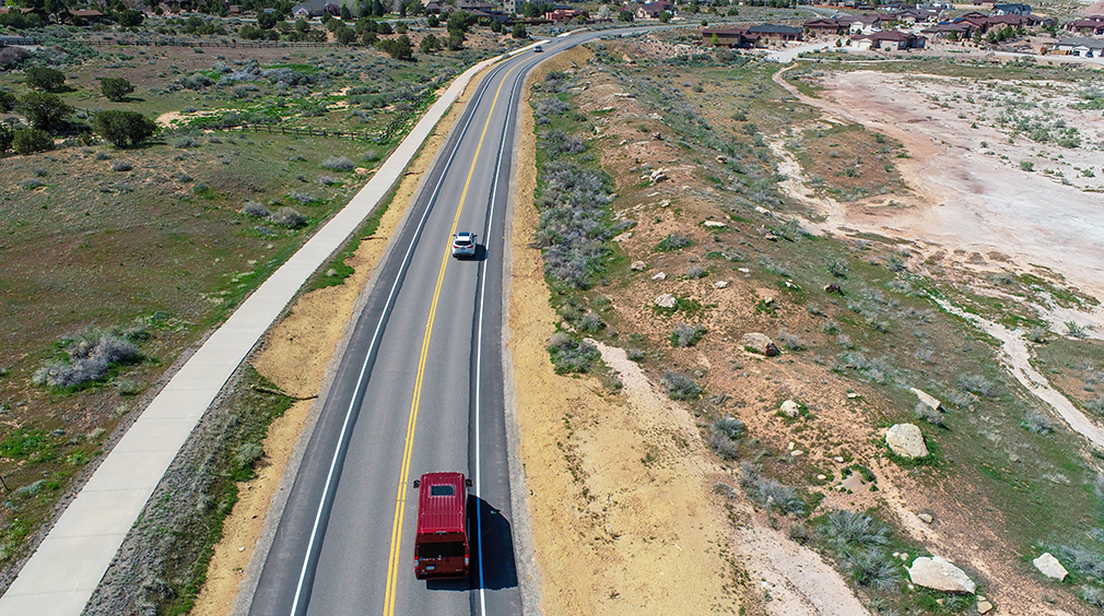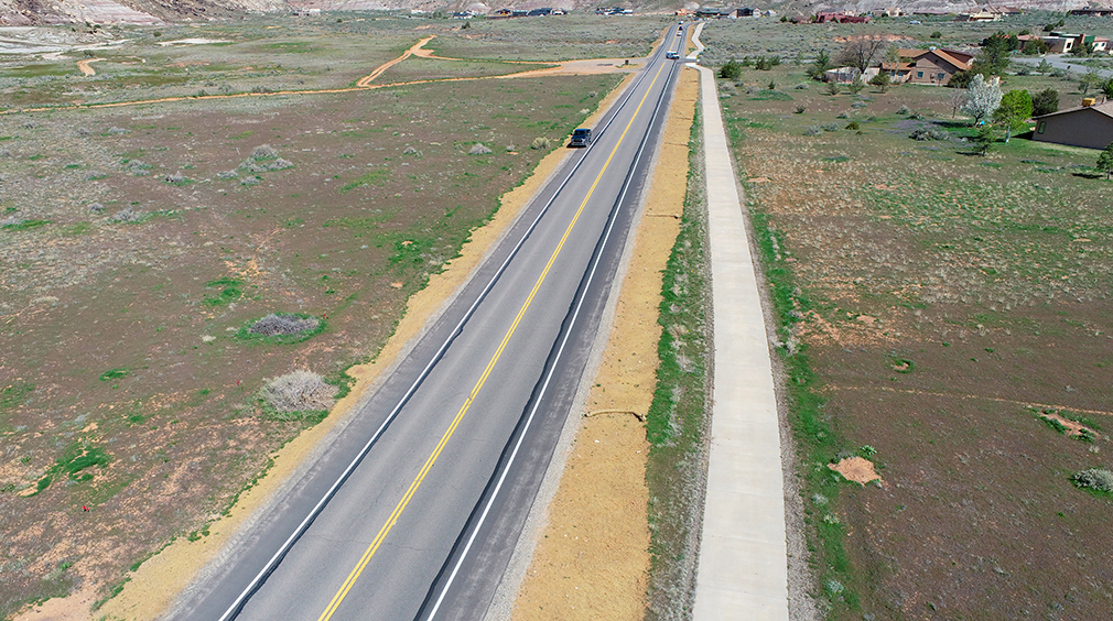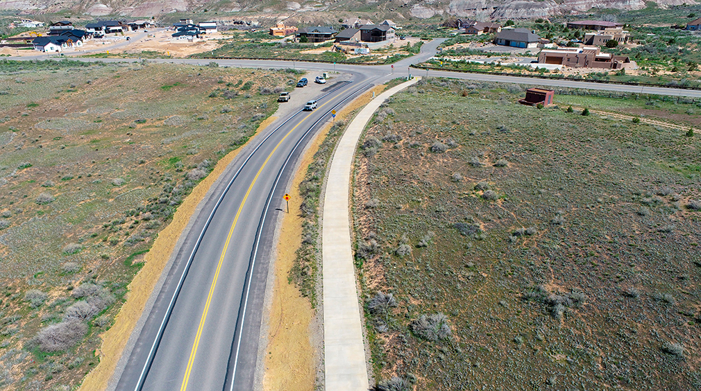 KLJ’s design included the addition of five-foot paved shoulders on both sides of South Camp Road for approximately 3,400 feet to facilitate the high volume of cycling traffic along the Tour of the Moon cycling route. The team improved intersections by refining the turning radii and existing approaches associated with a detached concrete recreational path parallel to South Camp Road. Two existing corrugated metal pipe (CMP) culverts were extended and an apron-entrance to an existing unimproved dirt parking lot on City of Grand Junction land was provided.