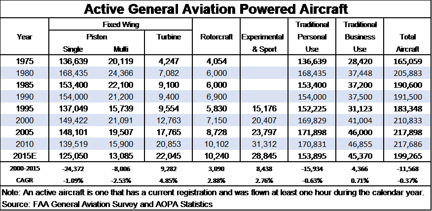 - The piston fleet is currently dependent on 100LL fuel. Keep an eye on progress toward a 100LL replacement. It will clearly affect this group which comprises 70% of the GA fleet.