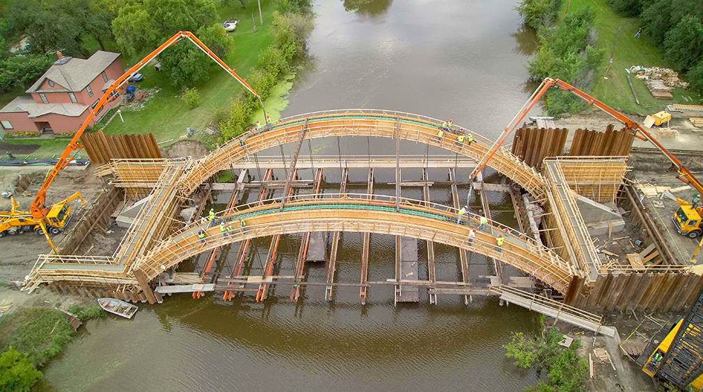 A new, wider Marsh Arch bridge was constructed. The new bridge was designed in strict conformance with the original Marsh Arch patent and received numerous awards including the ND Ready Mix Association Excellence in Concrete, ND ACEC Excellence in Engineering and ND APWA Public Works Project of the Year–Large Communities. KLJ also prepared and presented a paper on the project at the International Bridge Conference in Pittsburgh, PA.