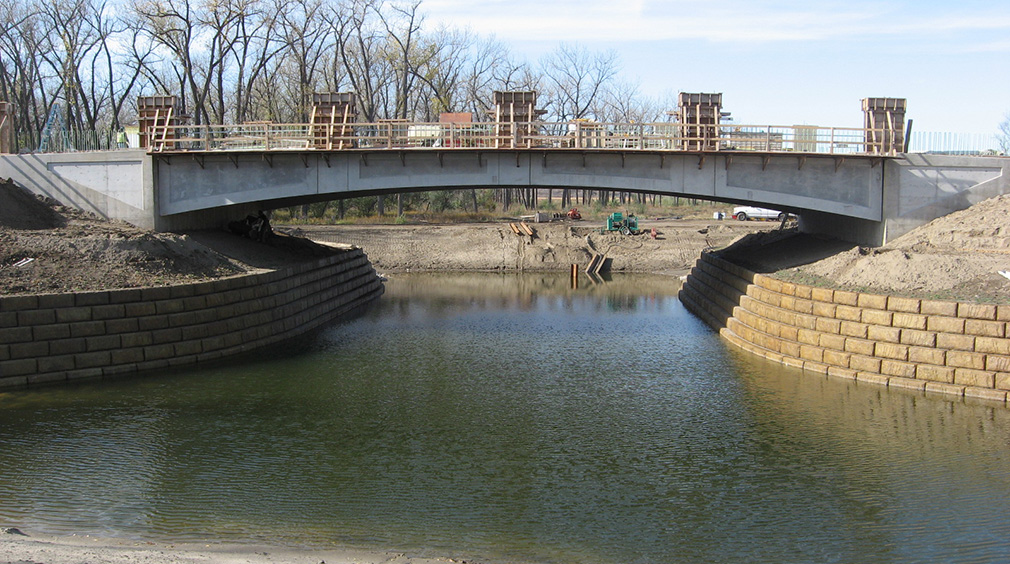 The project aspects far surpassed typical work development project. Bridge construction prior to excavating the bay made construction more affordable. Significant cost savings were also realized by coordinating contractors' work so components could be constructed prior to placing fill, eliminating the amount of excavation necessary to bury project components. Additional services provided by KLJ included surveying, wetland mitigation, permitting, concept design, platting, roadway and trail design, bridge design, water quality measures and water, sanitary and storm systems.